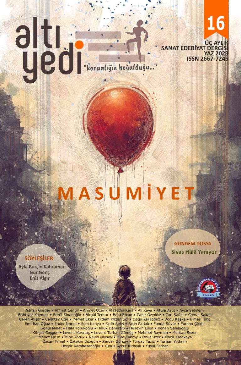 Altıyedi Sanat Edebiyat Dergisi’nin yeni sayısı “Masumiyet” ana dosya konusu ve “Sivas Hâlâ Yanıyor” gündem dosya konusuyla yayımlandı. Elli beş yazar, şair ve çizeri buluşturan Altıyedi; dosya yazılarının dışında öyküler, şiirler, söyleşiler, kitap incelemeleri ve edebiyat soruşturmasıyla okurlarının karşısına 104 sayfa olarak çıktı. Kapak tasarımı Mine Yörük’e ait olan sayıya ayrıca Kürşat Coşgun, Betül Sinanoğlu…